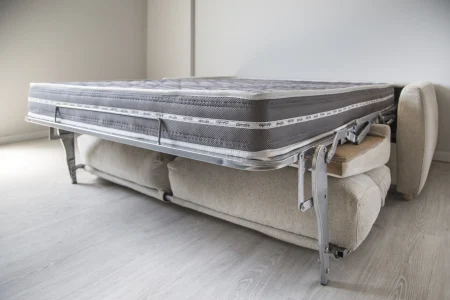 Canapea extensibila cu structura metalica si saltea inclusa.