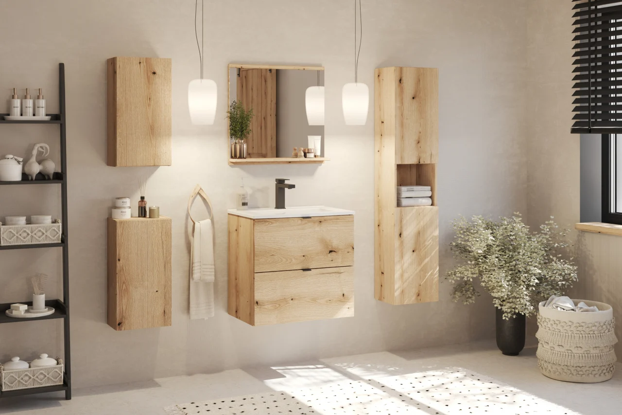 Livrat în pachet plat pentru o asamblare facilă, fără a necesita cunoștințe specializate, mobilierul Nova Oak îmbină designul rafinat cu funcționalitatea practică — pentru o baie modernă, organizată și plină de stil.