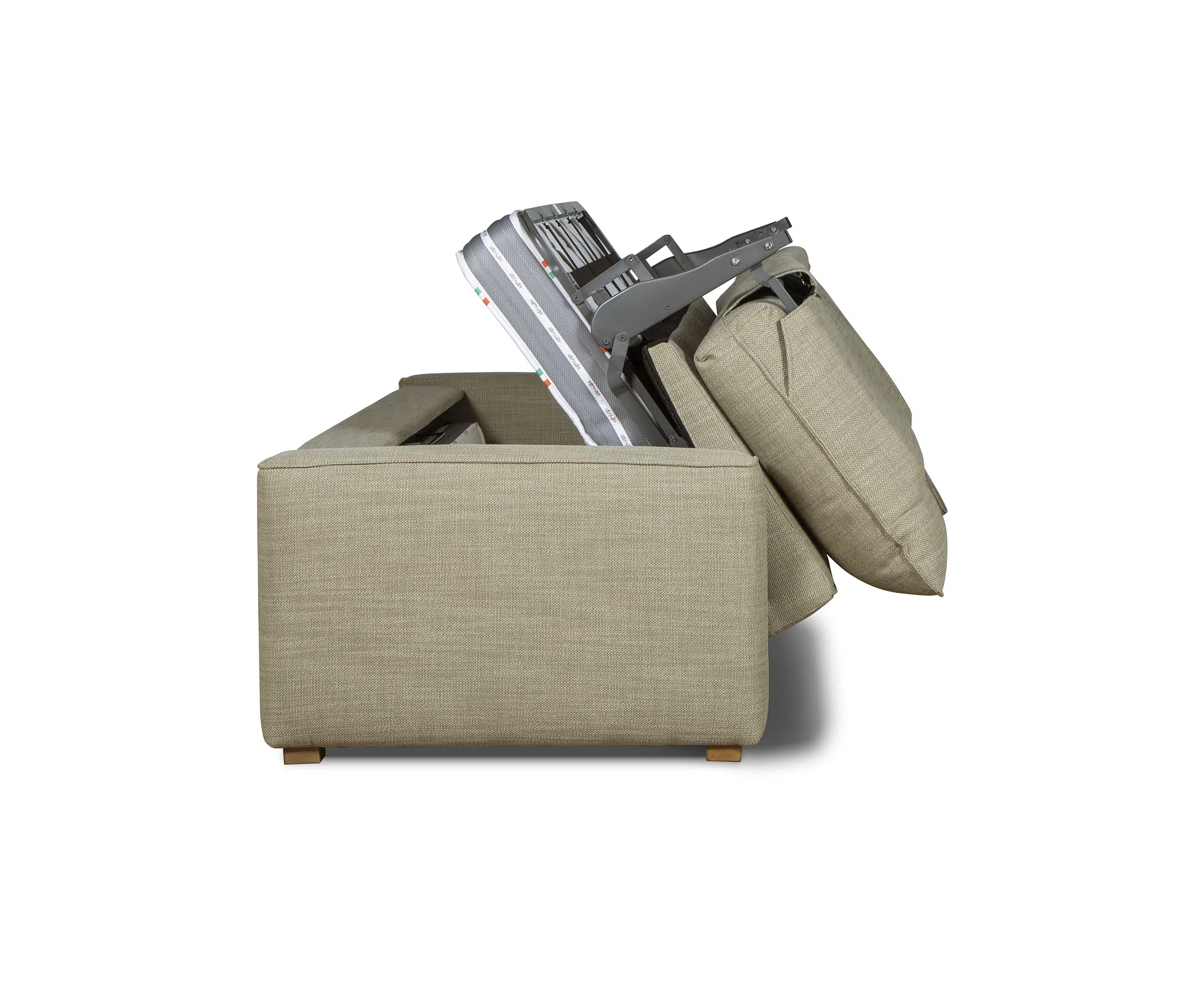 Spătar moale, dehusabil parțial și un pat spațios de 140 x 190 cm – tot ce ai nevoie într-o singură piesă de mobilier.